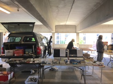 John Moran sets up on the second level adjacent to the down-ramp entrance. He's a big-time collector of and dealer in old Macintosh computers.