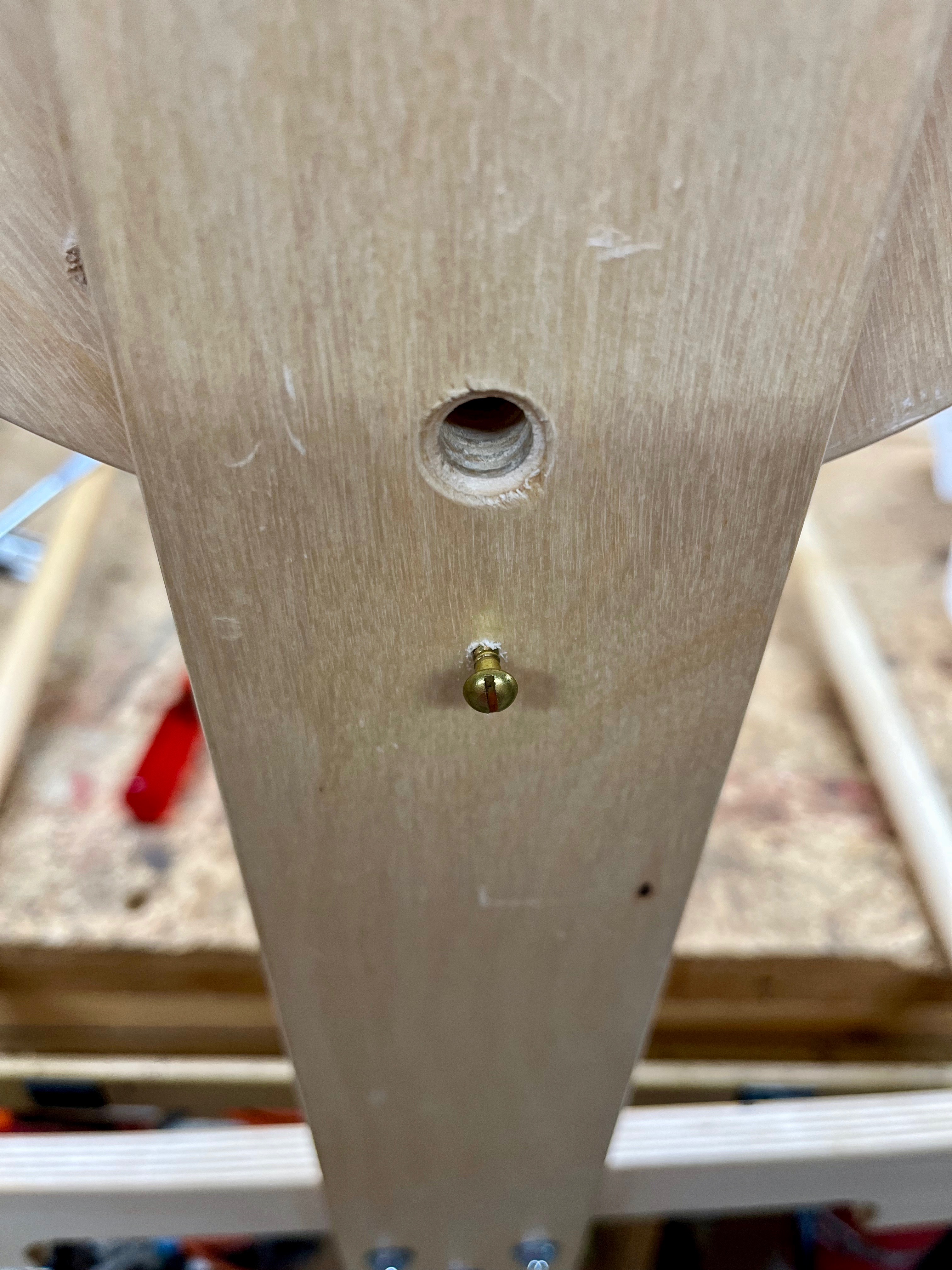 I then drilled a 7/16” pilot hole in both the pin and the side of the stand.